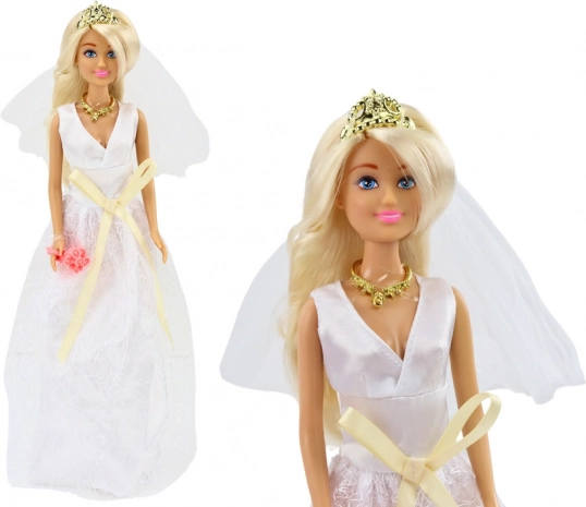 Představujeme Lalku Anlily ve svatebních šatech, která se svými pečlivě zpracovanými detaily přitáhne pozornost každého dítěte. Je oblečená ve dlouhé bílé šaty, které zdůrazňují jemnost a eleganci. Předek šatů je ozvláštněný béžovou mašlí, což přidává na celkovém šarmu.