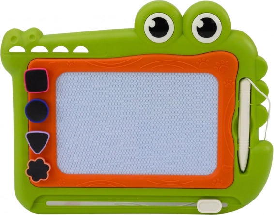 Stůl na kreslení Znikopis Krokodýl potěší svým inovativním designem a rozšířenými kreativními možnostmi, které nabízí. Zažijte vytváření barevných kreseb bez použití papíru či barev s pomocí magnetického stylusu.
