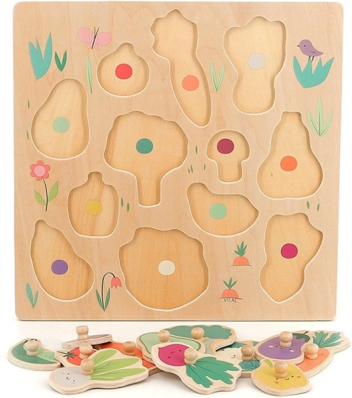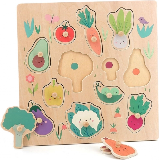 Vilac puzzle Zelenina s úchyty je ideální hračkou pro děti, která kombinuje zábavu s učením. Pomocí dřevěných úchytů snadno zvládnou všechny kousky a rozvíjejí jemnou motoriku a kognitivní dovednosti.
