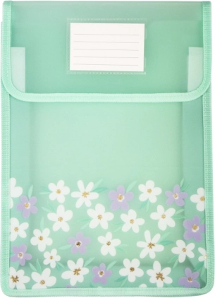Praktické a elegantní pouzdro na dokumenty A4 v zeleném provedení s jemným květinovým motivem je ideální do školy, kanceláře i domácnosti. Snadné uzavírání na suchý zip chrání obsah a umožňuje rychlou manipulaci.