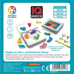 SMART-IQ Srdce je kompaktní logická hra, ve které budete umisťovat barevné drahokamy tak, abyste zaplnili herní desku do tvaru srdce. Díky oboustranné desce si vyzkoušíte dva způsoby skládání – každý s jinou výzvou i strategií.