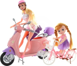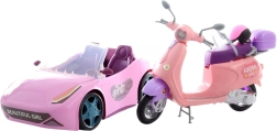 Růžové auto (33 cm), realistický skútr (30 cm) a kolo (17 cm) umožní panenkám vyrazit na výlety, do města i do parku. Snadno se ovládají a podporují akční hru.