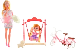 Součástí setu je auto, skútr a kolo pro dynamické přesuny, houpačka pro chvíle odpočinku a roztomilý pejsek jako věrný parťák. Děti mohou střídat outfity a doplňky, plánovat výlety a vytvářet vlastní příběhy.