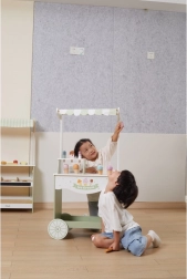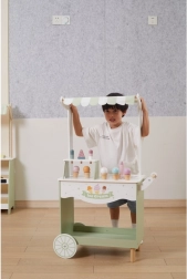 Mobilní s dvoukolovou konstrukcí, tento stánek je ideální pro hraní jak uvnitř, tak venku, a povzbudí děti k rolové hře a sociální interakci.