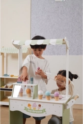 Vydejte se na cestu plnou fantazie s naším dřevěným zmrzlinovým stánkem pro děti. Tento barevný stánek zahrnuje širokou škálu dřevěných zmrzlin a příslušenství, které děti zabaví na dlouhé hodiny:
