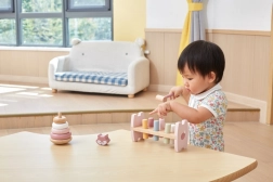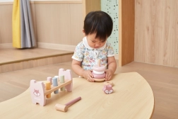 S použitím kladívka a skládání pyramidy si děti zlepšují motorické dovednosti.