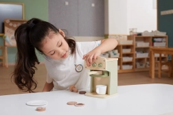 Dětský kávovar umožňuje simulovat přípravu kávy, což přispívá k realistické hře a rozvoji role-playing.