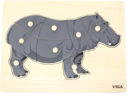 Tato kvalitní dřevěná vkládačka s motivem hrocha od značky VIGA je ideální první puzzle pro nejmenší. Knoflíkové úchyty na dílcích usnadňují manipulaci, zatímco stabilní dřevěná deska drží tvar i při častém používání. Hračka přirozeně rozvíjí jemnou motoriku, soustředění a koordinaci pohybů.