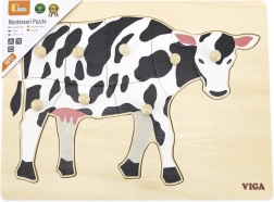 Děti si procvičí rozpoznávání tvarů i pojmenovávání zvířat. Kontrastní černobílý motiv krávy vede k soustředění a lepší orientaci.