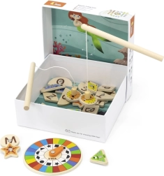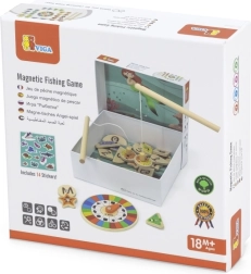 Zábavná a vzdělávací dřevěná magnetická rybářská hra od VIGA přináší 26 magnetických rybek s písmeny, 2 pruty a otočné kolečko pro výběr úlovku. Rozvíjí koordinaci oko–ruka, poznávání barev a tvarů a nabízí spoustu zábavy s netoxickými barvami už od 18 měsíců.