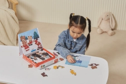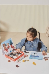 Tato kreativní sada přináší oblíbené dřevěné magnetické oblékání s motivem medvědí rodiny. Děti mohou skládat různé outfity a výrazy, zkoušet profese i každodenní situace a vytvářet vlastní příběhy. 54 magnetických dílků nabízí spoustu kombinací pro dlouhé hodiny zábavy.