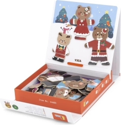 Objevte zábavnou sadu pro malé tvůrce: dřevěné magnetické oblékání Viga – medvědí rodina se 54 dílky. Děti od 3 let si při kombinování oblečků a výrazů procvičí jemnou motoriku, koordinaci oko–ruka i fantazii. Kompaktní balení 21,5 × 21,5 × 4,5 cm se snadno přenáší a uklízí.