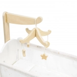 Závěsný dřevěný kolotoč přináší vizuální podněty a dodává kolébce kouzelnou atmosféru pro uklidňující rituály před spaním panenky.