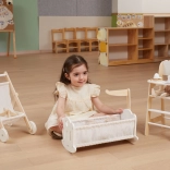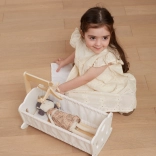 Díky pevným dřevěným dílům a přiloženému polštářku s peřinkou vytvoříte pro panenku útulné místo na odpočinek. Kolébka je perfektní do dětského pokojíčku a skvěle podporuje sociální dovednosti, představivost i jemnou a hrubou motoriku.