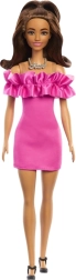Tato panenka BARBIE Modelka přichází v stylových růžových šatech s jemnými volánky a černými sandálky. Dlouhé hnědé vlasy a módní detaily z ní dělají skvělý doplněk do každé dětské sbírky. Podporuje představivost, sebevyjádření a pozitivní vnímání rozmanitosti.
