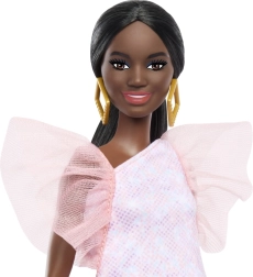 Stylová panenka BARBIE Modelka v růžových šatech s nadýchanými rukávy přináší nekonečné možnosti kreativní hry. Díky modernímu outfitu, výrazným zlatým náušnicím a modrým botám je ideální pro módní styling, vyprávění příběhů a rozvoj dětské fantazie. Panenka je součástí kolekce, která oslavuje rozmanitost odstínů pleti, vlasů a stylů. Vhodné pro děti od 3 let.