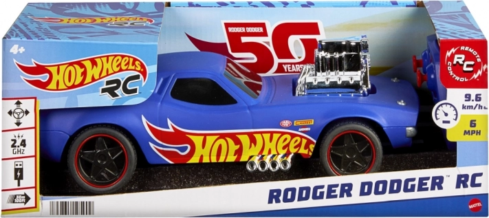 Užijte si vzrušující závody s legendárním HOT WHEELS Rodger Dodger – svalnatým vozem s výraznou chromovanou kapotou, plamenovými polepy a robustními koly. Díky frekvenci 2,4 GHz můžete jezdit bez rušení i s více auty najednou, a díky USB nabíjení se rychle vrátíte zpět na trať.