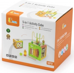 Objevte pestrou dřevěnou aktivní kostku 5v1 od Viga, která dětem od 18 měsíců přináší hodiny chytré zábavy. Každá strana nabízí jinou aktivitu – xylofon, vkládačku tvarů, labyrint, otáčecí kostky a motorické dráhy s korálky. Kvalitní masivní dřevo, bezpečné provedení a živé barvy podporují rozvoj jemné motoriky, logického myšlení i kreativity.