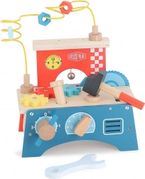 Speciálně navržené prvky jako kladívko a mazelabyrint pomáhají v rozvoji jemné motorické koordinace a zručnosti.