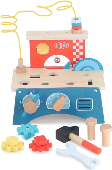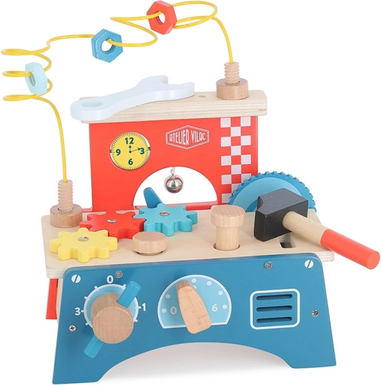 Multi-aktivitní stůl od značky Vilac je navržen tak, aby podporoval rozvoj dětí v různých oblastech. Obsahuje kladívko, zvoneček, ozubená kolečka a spoustu dalších prvků pro rozvoj smyslů a motorických schopností. Hračky inspirované Montessori metodou podporují přirozený vývoj dítěte, zdůrazňují samostatnost a objevování. Děti se učí hrát spolu, což napomáhá rozvoji jejich sociálních dovedností.