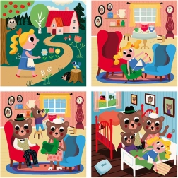 Čtyři samostatná puzzle po 9 dílcích vyprávějí pohádku o Zlatovlásce krok za krokem a podporují dětskou fantazii i vyprávění.