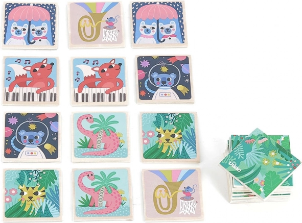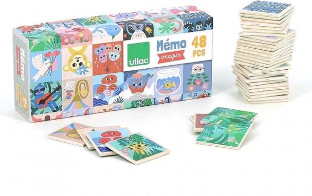 Vilac Dřevěné pexeso je ideální pro děti, které milují barevné ilustrace a zábavné hry. Tyto herní kartičky, které jsou dokonale přizpůsobeny pro malé dětské ručičky, pomáhají rozvíjet slovní zásobu, paměť a smysl pro pozorování.