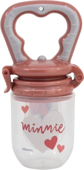 Krmné kousátko Minnie Mouse je navrženo tak, aby usnadnilo první potravinové zážitky vašeho dítěte. Ochranné víčko zabraňuje požití nežádoucích částic, zatímco dítě si užívá bezpečné sání a žvýkání jídla.