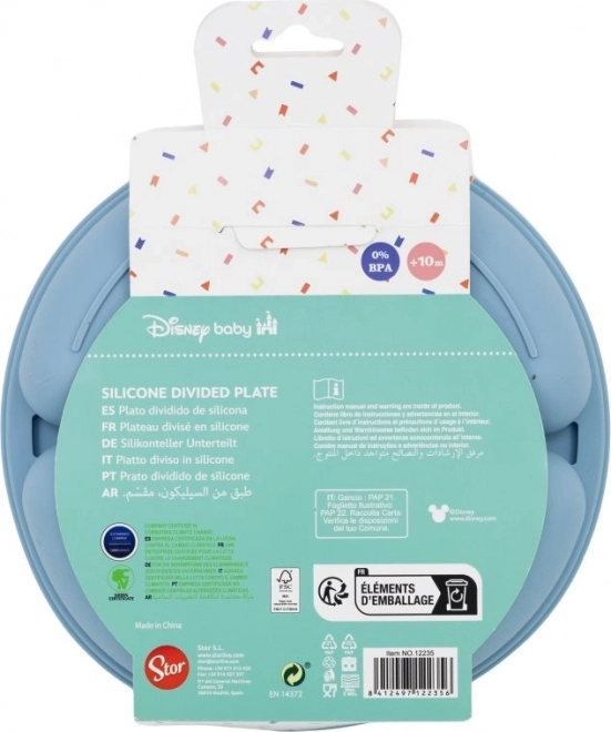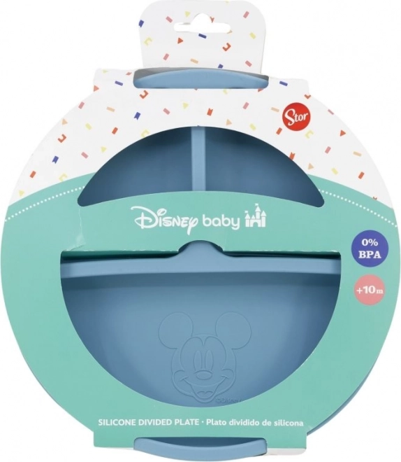Tento silikonový talířek je designován s populárním motivem Mickeyho Mouse, který děti milují. S třemi oddělenými přihrádkami je ideální pro oddělení různých potravin, což usnadňuje zdravou výživu a zabraňuje míchání chutí.