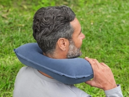 Nafukovací polštář Bestway má unikátní tvar, který poskytuje pohodlí a stabilní oporu pro krk a ramena, což z něj činí ideálního společníka na cestách.