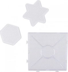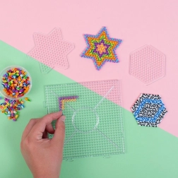 Průhledné podložky PLAYBOX pro zažehlovací korálky usnadní tvoření díky možnosti vložit předlohu pod podložku. V balení najdete 3 tvary – čtverec, šestiúhelník a hvězdu. Podložky lze propojovat a mají ekoznámku Nordic Swan, takže jsou ideální pro kreativní hraní celé rodiny.