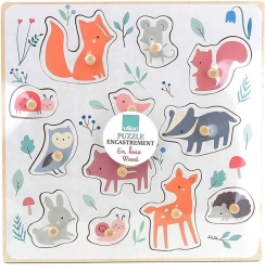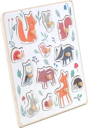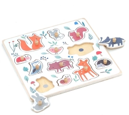 Tato kvalitní dřevěná skládačka s motivy lesa vznikla ve spolupráci s ilustrátorkou Sarah Betz a přináší dětem radost z objevování. Barevné tečky na podložce jemně napoví, kam který dílek patří, a podporují tak soustředění i logické myšlení. Díky pevným dřevěným úchytům děti trénují správné držení a rozvíjejí jemnou motoriku.