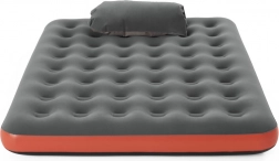 Tato dvouosobní nafukovací matrace kombinuje robustní PVC materiál odolný proti poškození s příjemným sametovým (flokovaným) povrchem pro vyšší komfort a přilnavost prostěradla. Integrovaný polštář 2 v 1 a stabilní coil‑beam konstrukce poskytují rovnoměrnou oporu těla po celou noc.