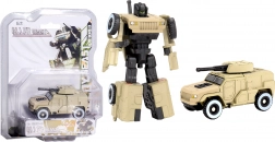 Zábavný kovový autorobot o délce 11 cm, který potěší malé fanoušky vojenské techniky. Nabízí 4 varianty – stíhačka světlá, stíhačka tmavá, tank a vojenské vozidlo. Odolné kovové provedení zajišťuje dlouhou životnost a skvělou hratelnost.