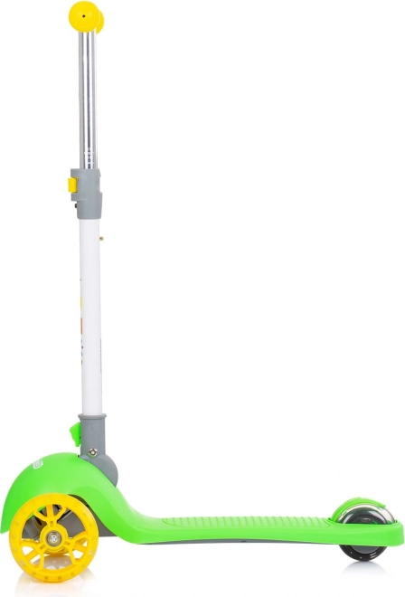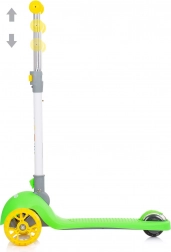 Dopřejte dětem zábavnou a bezpečnou jízdu s koloběžkou CHIPOLINO Funky v zeleno‑žlutém provedení. Lehký hliníkový rám usnadňuje ovládání, zatímco široké protiskluzové stupátko a gumové rukojeti zajišťují jistotu při jízdě. Barevné LED diody v předních i zadních kolech se rozsvítí při pohybu a zvyšují viditelnost.