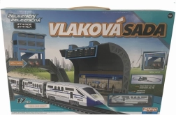 - 1× lokomotiva se světelným efektem, 1× vagón, 14× kolejnice, 1× stanice