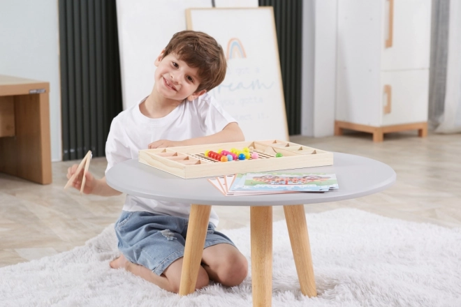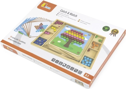 Dřevěná hra "Chyť a Seřaď" od značky Viga pro děti od 3 let, která rozvíjí nejen jejich schopnost rozpoznávat barvy a vzory, ale i koordinaci ruky a oka a koncentraci.