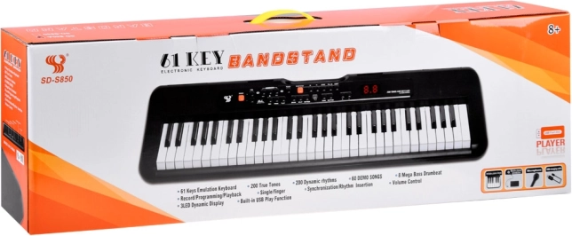 Tento moderní keyboard se 61 klávesami přináší širokou paletu zvuků a doprovodů: 200 tónů, 200 dynamických rytmů a 60 demo skladeb. Díky funkci record/play si snadno nahrajete nápady a zlepšíte praxi. Měkký chod kláves a stereo repro se dvěma kanály zajistí příjemný herní zážitek.