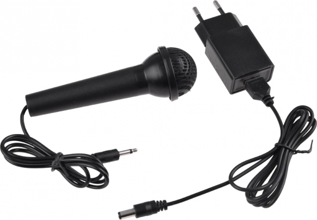 Vstup pro mikrofon, AUDIO IN pro telefon nebo přehrávač a PHONE/LINE OUT pro sluchátka či externí repro. Napájení přes USB nabíječku.