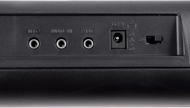 - MIC (vstup pro mikrofon), AUDIO IN (line in), PHONE/LINE OUT (sluchátka / výstup do externích reproduktorů)