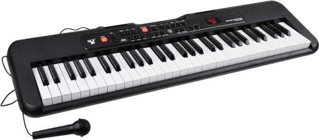 Objevte lehký a přenosný klávesový nástroj se 61 klávesami, 200 tóny a 200 rytmy, který potěší začátečníky i pokročilé. Nabízí stereo zvuk, záznam a přehrávání, vstup pro mikrofon a line in/out pro připojení telefonu, sluchátek či externích reproduktorů. Součástí je mikrofon a USB napájení – ideální pro domácí cvičení, párty i první hudební krůčky.