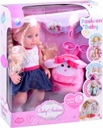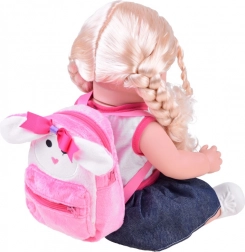 Součástí výbavy jsou stylové růžové brýle a měkký plyšový batůžek s roztomilými oušky králíčka, do kterého si malí rodiče mohou ukládat drobnosti. Pohyblivé končetiny zajišťují přirozené polohování při hraní – ať už se jde na procházku, čte knížka, nebo se sledují pohádky.