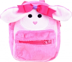 Batůžek s oušky a mašličkou je měkký na dotek, má kapsu na zip a vejde se do něj drobné příslušenství na cesty.