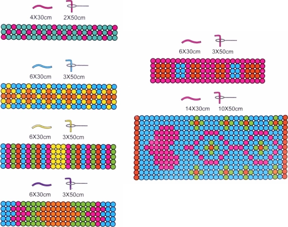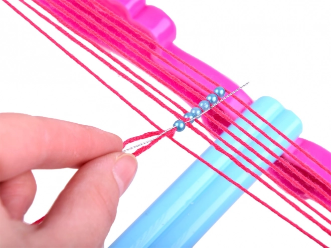 Růžovo-modrý stav drží nitě pevně na místě a umožňuje pohodlné navlékání korálků i pravidelné vzory.