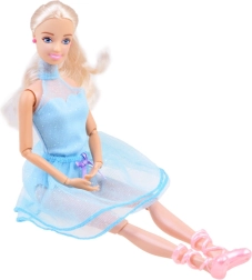 Elegantní panenka ANLILY potěší každou malou baletku. Má dlouhé blond vlasy, ohybná kolena a lokty pro snadné pózování a tancování, nosí modré třpytivé šaty a růžové balerínky. V balení najdete také další třpytivou tutu sukýnku pro rychlou změnu stylu. Výška panenky je přibližně 30 cm.