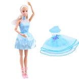 Součástí balení je extra třpytivá modrá tutu sukýnka s fialovou stužkou pro rychlou změnu outfitu.