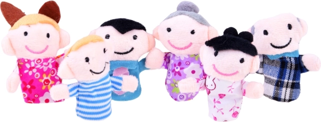 Set obsahuje šest prstových loutek – dědečka, babičku, maminku, tatínka, chlapce a dívku.