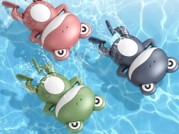 Stačí otočit kolečkem na zádech žáby a po ponoření do vody začne žába sama plavat, což přináší dítěti hodiny zábavy.