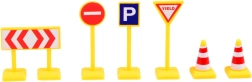 Sada obsahuje i plastové dopravní značky, které pomáhají dětem učit se silniční předpisy a zároveň rozvíjejí jejich představivost.