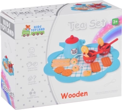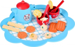 Roztomilá dřevěná čajová sada pro děti v modrých odstínech přináší vše pro malou čajovou party: tác, konvičku, šálky, lžičky i sušenky a citron. Je vyrobena z odolného dřeva a opatřena bezpečnými, netoxickými barvami, takže je ideální pro rolové hry, rozvoj fantazie a jemné motoriky dětí od 3 let.