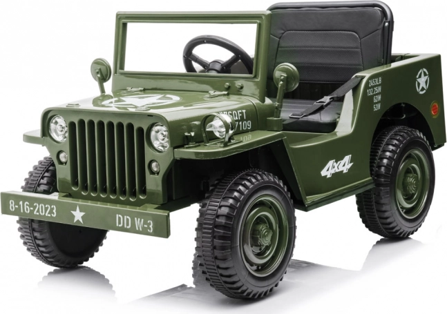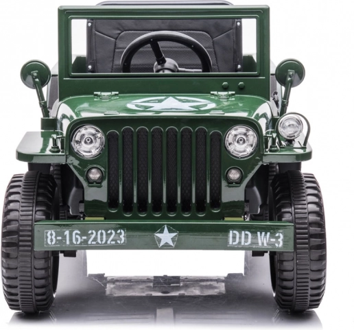 Stylový dětský jeep inspirovaný legendárním Willys přináší skvělou zábavu na dvoře i v parku. Nabízí 4 silné motory 12 V, gelovou baterii 12 V 7 Ah a ovládání přes 2,4 GHz dálkový ovladač pro rodiče. Pro pohodlí a bezpečí nechybí kožené sedadlo, bezpečnostní pásy, kola EVA, přední LED světla a hudební panel se zvuky motoru a klaksonem.